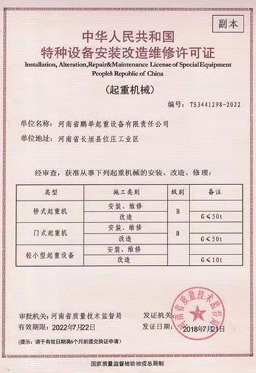 • 公司主要產(chǎn)品有單、雙梁橋門式起重機、冶金起重機、架橋機、懸臂吊、電動葫蘆、隱爆系列起重機等多項品種。廣泛應(yīng)用于機械、冶金、電力、鐵路、水利、港口等多種行業(yè)。在東北三省及內(nèi)蒙古自治區(qū)建有營銷、服務(wù)經(jīng)營網(wǎng)點。